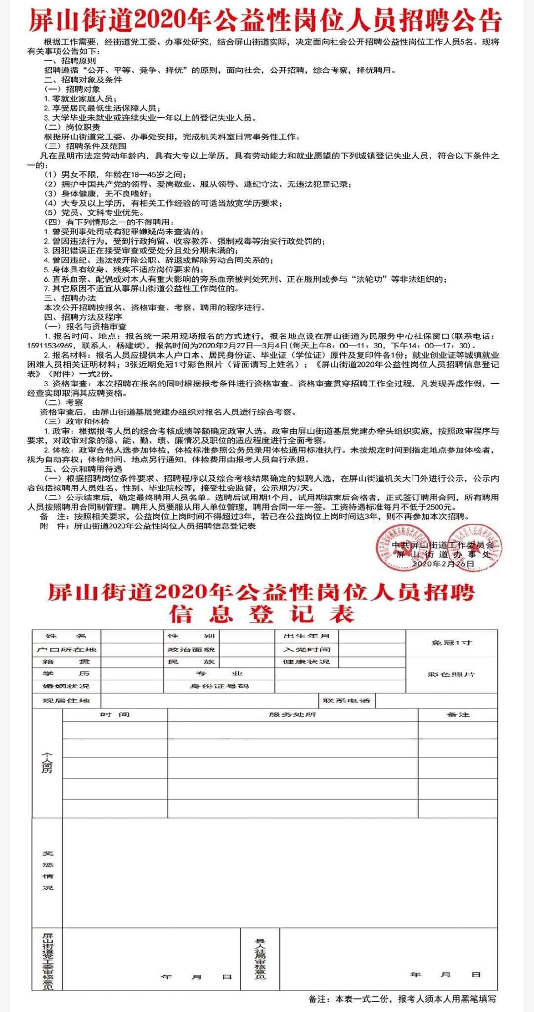 2020年昆明市祿勸縣屏山街道公益性崗位招聘公告