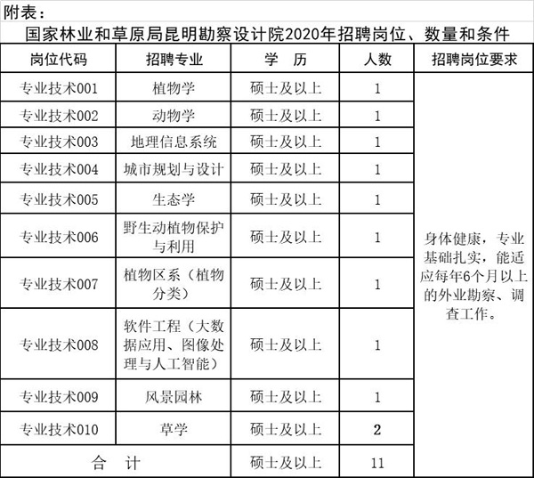 2、國(guó)家林業(yè)和草原局昆明院2020年公開(kāi)招聘高校畢業(yè)生信息采集表