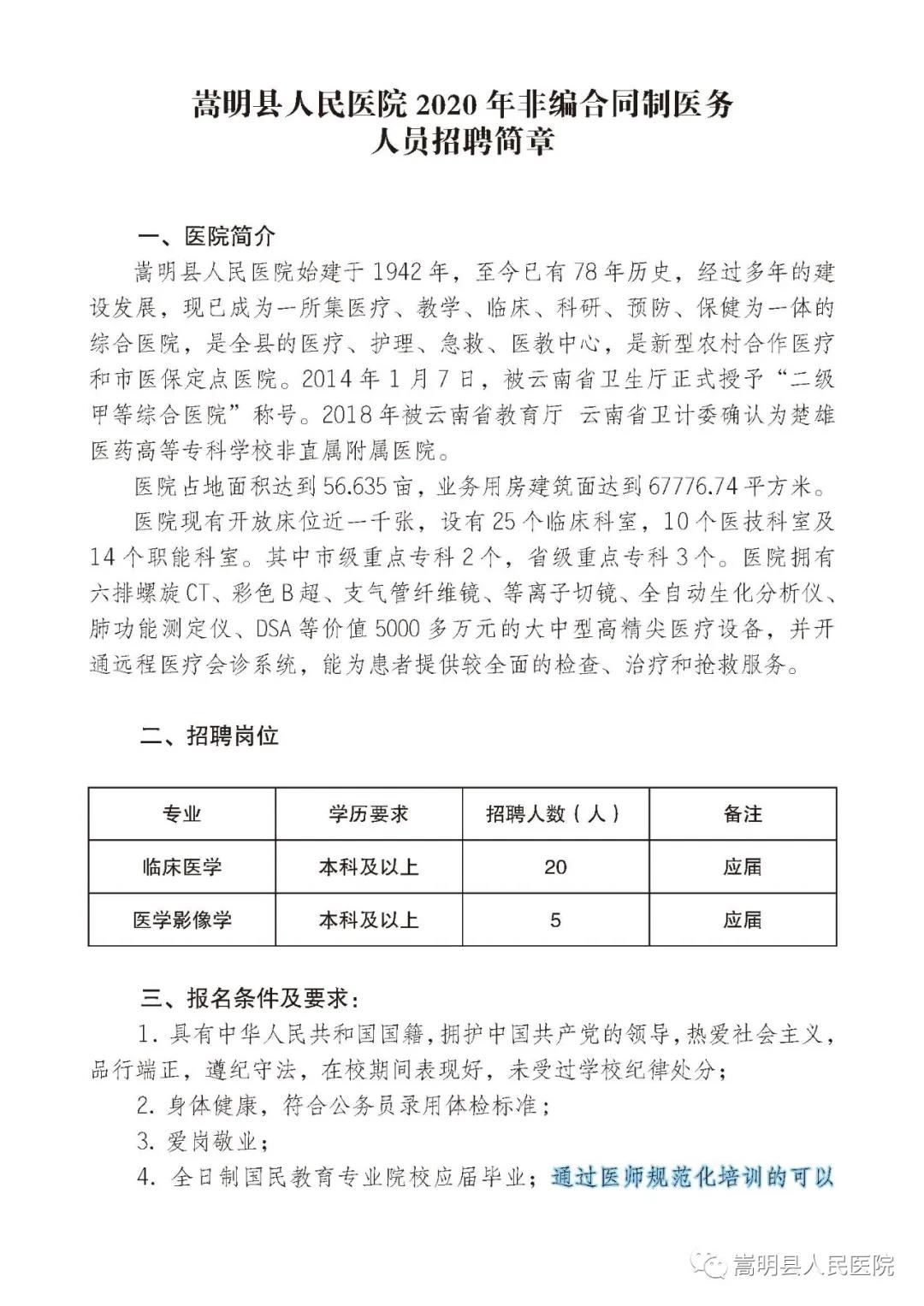 昆明市嵩明縣人民醫(yī)院2020年非編合同制醫(yī)務(wù)人員招聘簡(jiǎn)章