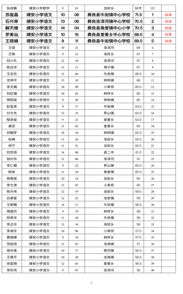 卯家灣安置區(qū)中小學(xué)教師筆試成績及擬錄情況公告(第六號(hào))