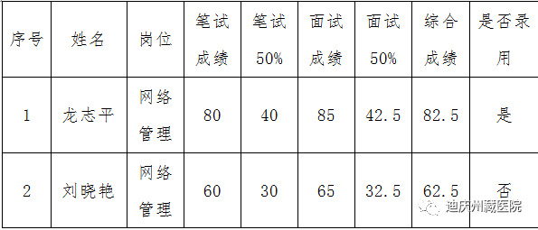 迪慶州藏醫(yī)院2020年公開招聘編外工作人員綜合成績(jī)表: