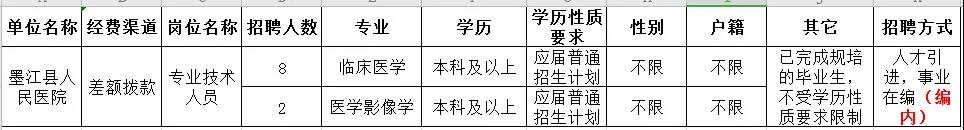 墨江縣人民醫(yī)院2020年衛(wèi)生人才招聘公告(編內(nèi))