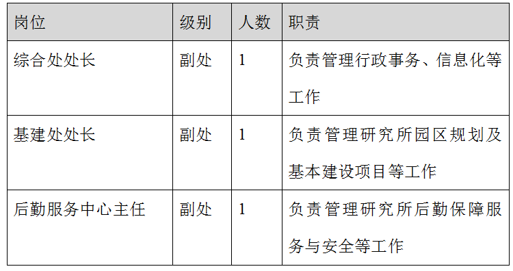 為建立一支精于管理、善于協(xié)調(diào)、勤于服務(wù)、敢于創(chuàng)新的專業(yè)化高素質(zhì)管理隊(duì)伍,本著“按需設(shè)崗、按崗聘用、競(jìng)爭(zhēng)擇優(yōu)、合同管理”的原則,按照《黨政領(lǐng)導(dǎo)干部選拔任用工作條例》、《中國(guó)科學(xué)院研究所中層領(lǐng)導(dǎo)人員選拔聘用和管理實(shí)施辦法》、《中國(guó)科學(xué)院人員聘用制度實(shí)施辦法》及研究所相關(guān)規(guī)定,現(xiàn)面向所內(nèi)外公開(kāi)招聘綜合事務(wù)部、科研發(fā)展部、黨群人事部、財(cái)務(wù)資產(chǎn)部副職,歡迎有志者報(bào)名。