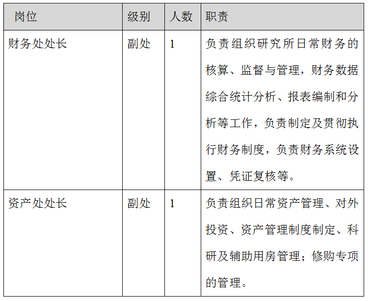 部門職責(zé):負(fù)責(zé)研究所資金的管理、監(jiān)督與控制;財(cái)務(wù)預(yù)算和決算,日常會(huì)計(jì)核算及財(cái)務(wù)管理;工資薪金發(fā)放及成本分?jǐn)?;稅?wù)工作;接受財(cái)務(wù)審計(jì)和監(jiān)察;基本建設(shè)財(cái)務(wù)管理;工會(huì)財(cái)務(wù)工作。負(fù)責(zé)固定資產(chǎn)配置、采購(gòu)、處置、產(chǎn)權(quán)登記、清查、信息及檔案管理;對(duì)外投資管理;科研及輔助用房管理;參與科研設(shè)備購(gòu)置(修購(gòu)專項(xiàng))的規(guī)劃。完成領(lǐng)導(dǎo)交辦的其他工作。