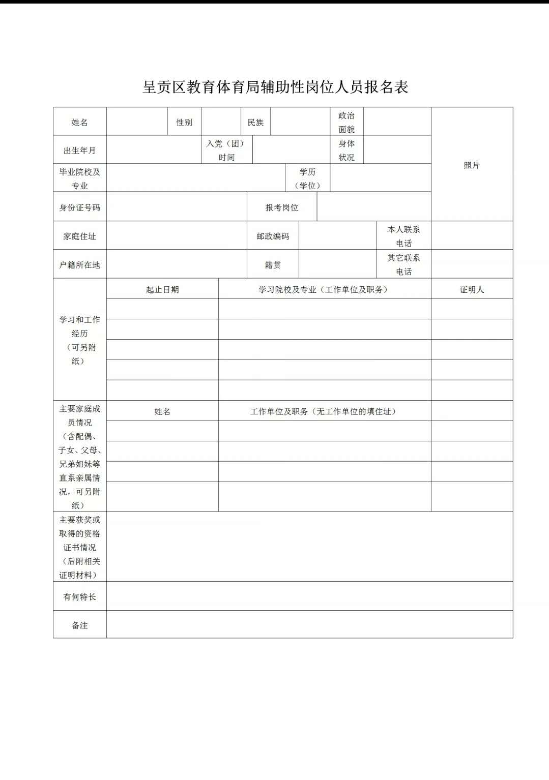 1.填寫(xiě)《輔助性崗位人員報(bào)名表》;