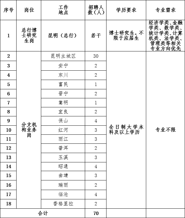 當(dāng)前,富滇銀行正積極貫徹落實(shí)習(xí)近平總書記考察云南重要講話精神,緊緊圍繞云南發(fā)展“三個(gè)定位”和省委、省政府戰(zhàn)略部署,堅(jiān)持優(yōu)化質(zhì)量、做大規(guī)模、突出特色、打造精品的“優(yōu)、大、特、精”四字原則,深耕“綠色金融、旅游金融、跨境金融、普惠金融、數(shù)字金融”五大特色金融業(yè)務(wù)板塊,努力打造“現(xiàn)代化、國(guó)際化、公眾化”的新型股份制商業(yè)銀行,為早日把富滇銀行建設(shè)成為具有核心競(jìng)爭(zhēng)力、在全國(guó)處于先進(jìn)水平的現(xiàn)代金融機(jī)構(gòu)努力奮斗。根據(jù)業(yè)務(wù)發(fā)展需要,富滇銀行啟動(dòng)2020年春季校園招聘,現(xiàn)將有關(guān)事項(xiàng)公告如下: