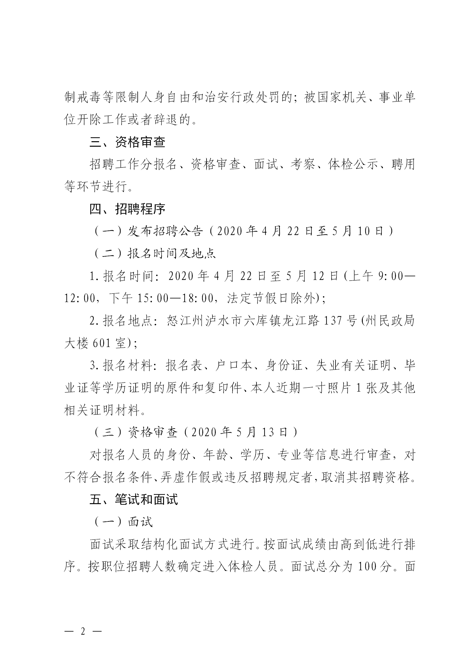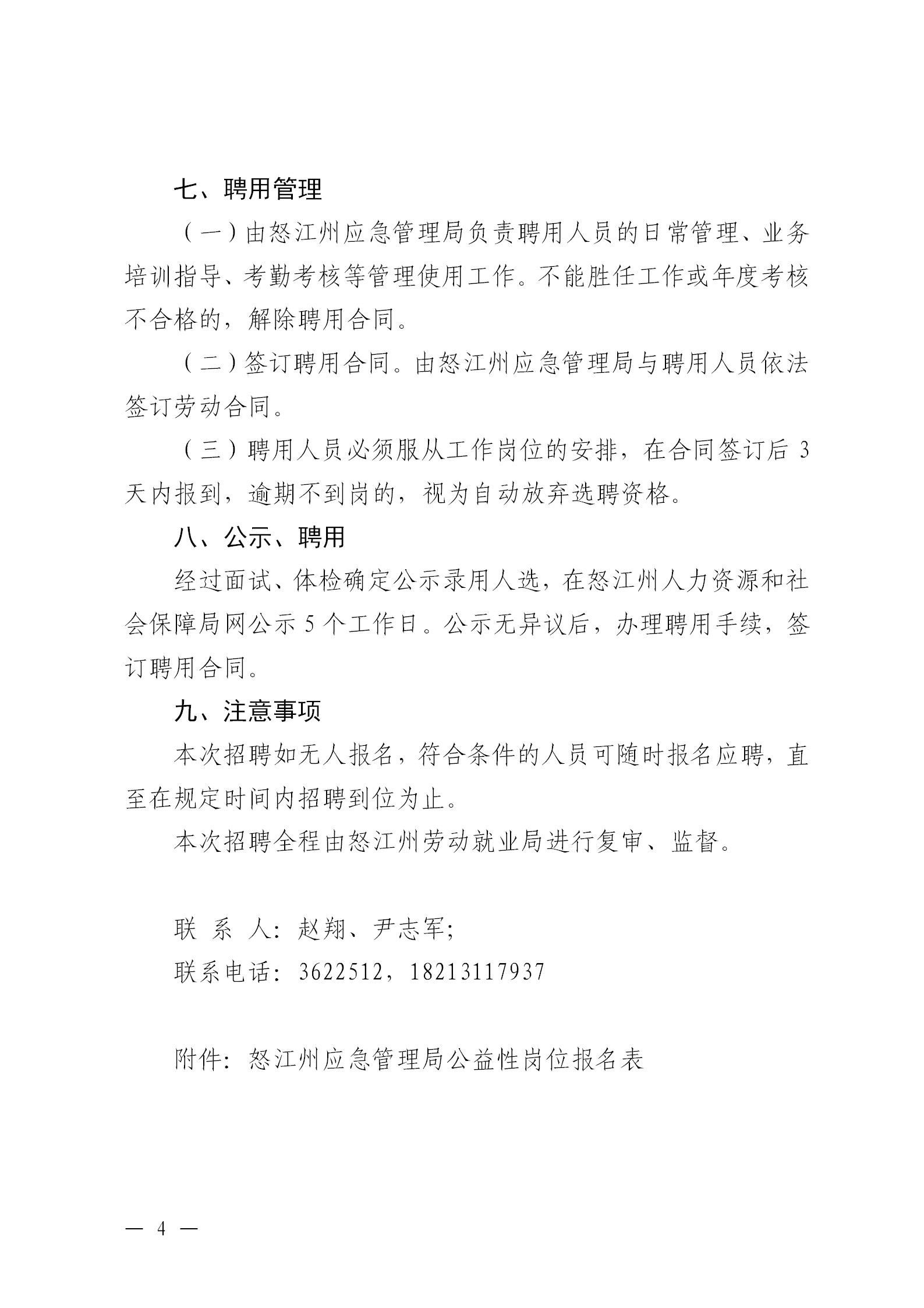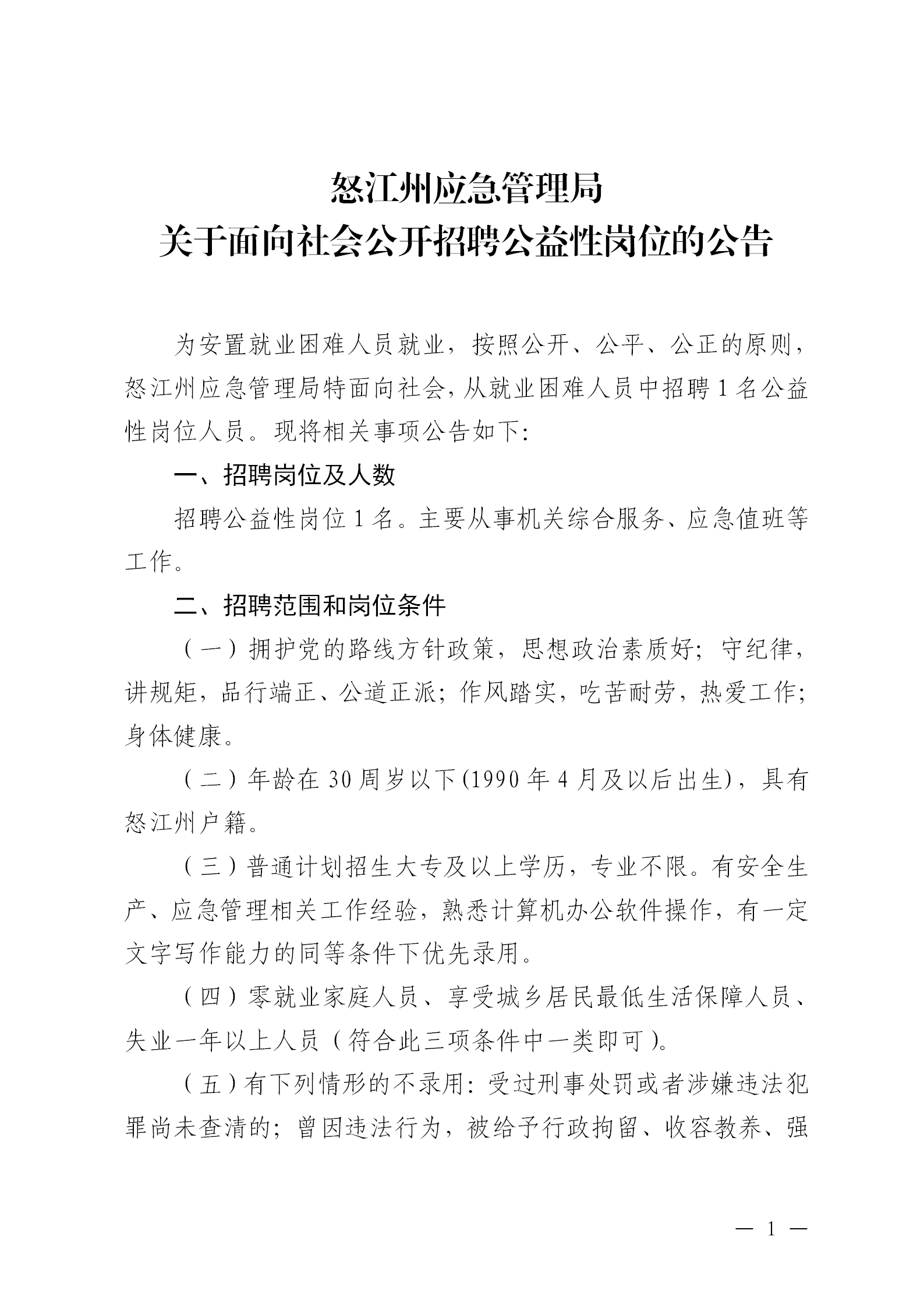 怒江州應急管理局關于面向社會公開招聘公益性崗位的公告