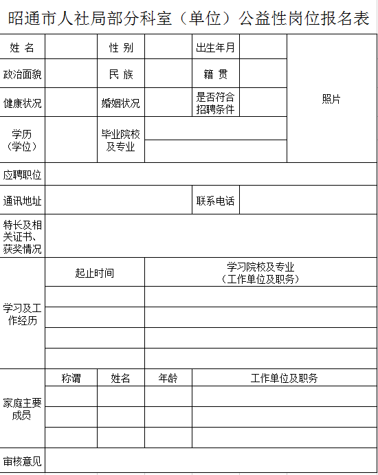 附件:昭通市人社局部分科室(單位)公益性崗位報名表