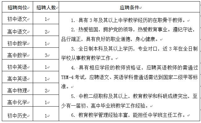 注:男教師年齡在40歲以下,女教師年齡在35歲以下。滿足以下條件之一并取得相關(guān)證件者,年齡可適當(dāng)放寬,同等條件下予以優(yōu)先考慮。