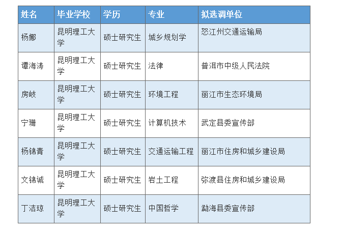 云南省面向選定高校招錄2020年定向選調(diào)生擬選調(diào)人員有關事項公告