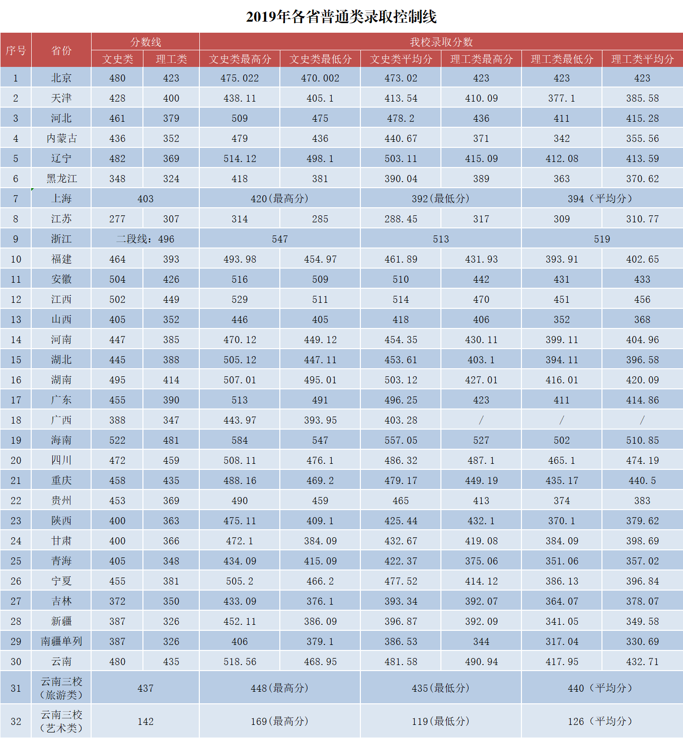 云南大學旅游文化學院2019年普通類錄取分數(shù)統(tǒng)計