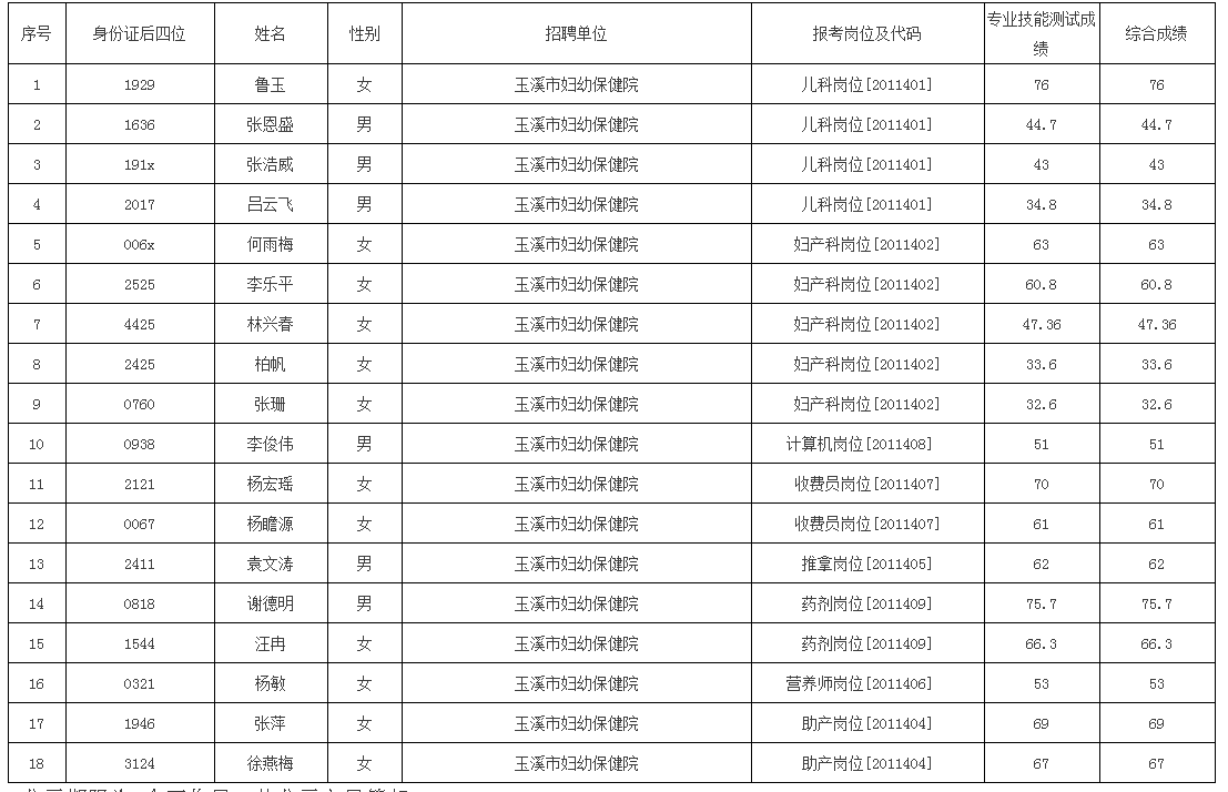 玉溪市婦幼保健院2020年公開招聘編外人員擬聘用人員公示
