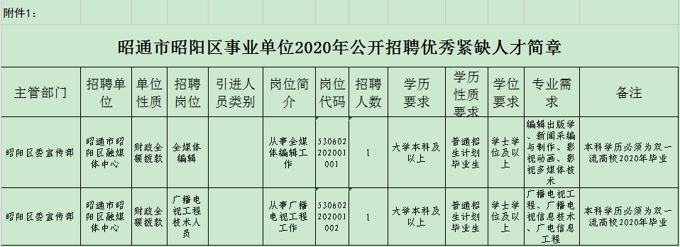 附件:1.昭通市昭陽區(qū)事業(yè)單位2020年公開招聘優(yōu)秀緊缺人才簡章