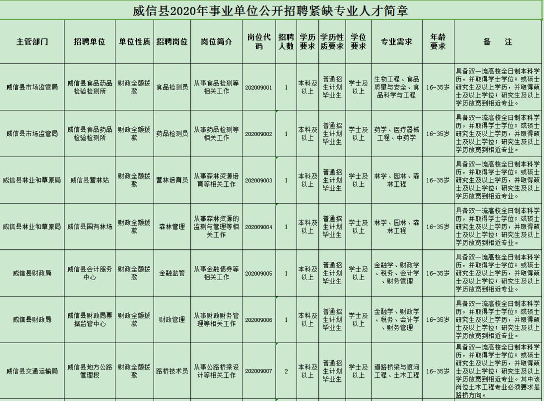 1.威信縣2020年事業(yè)單位公開招聘緊缺專業(yè)人才簡(jiǎn)章