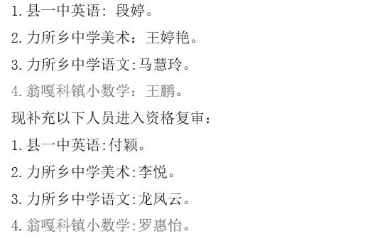 2020年5月11日西盟縣政府網(wǎng)公告《2020年西盟縣教育體育系統(tǒng)緊缺人才招聘面試工作相關事宜的通知》因特殊情況,以下人員不參加資格復審人員: