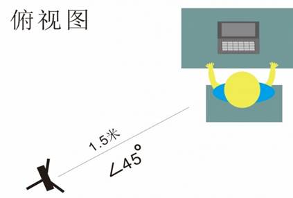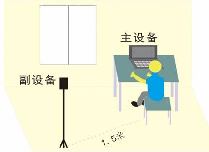 2.輔機(jī)位調(diào)試:攝像頭從考生側(cè)后方45°、1.5米處拍攝,需全程清晰顯示考生和主機(jī)位屏幕。