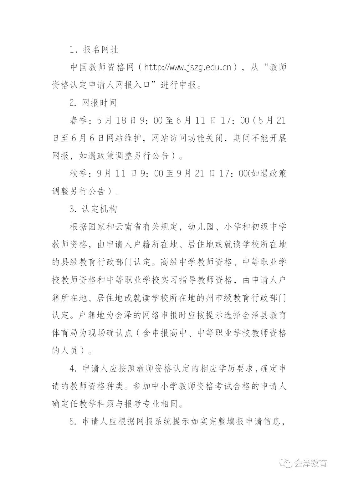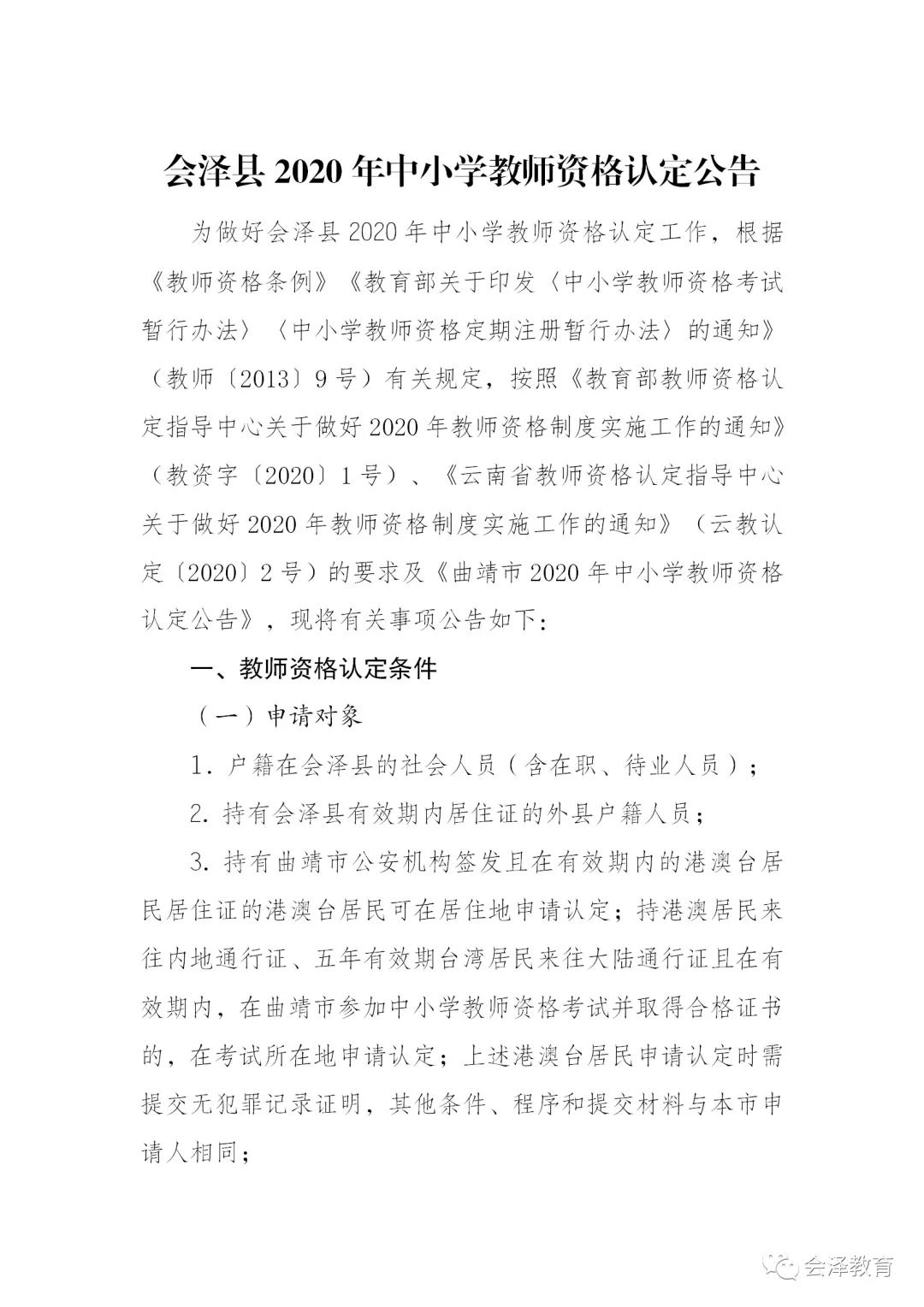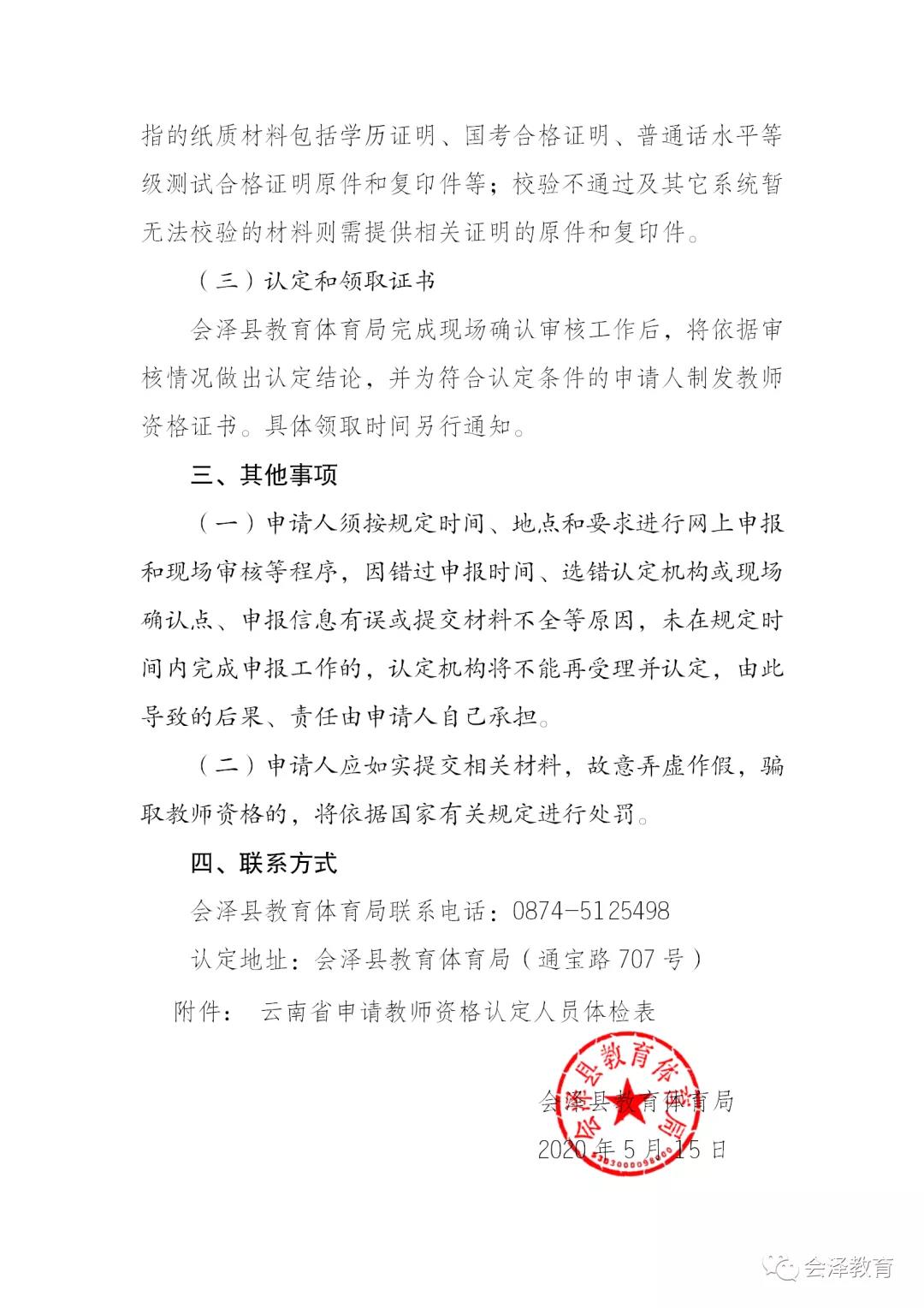 會澤縣2020年中小學(xué)教師資格認(rèn)定公告