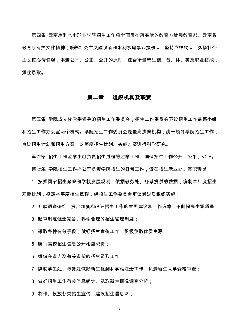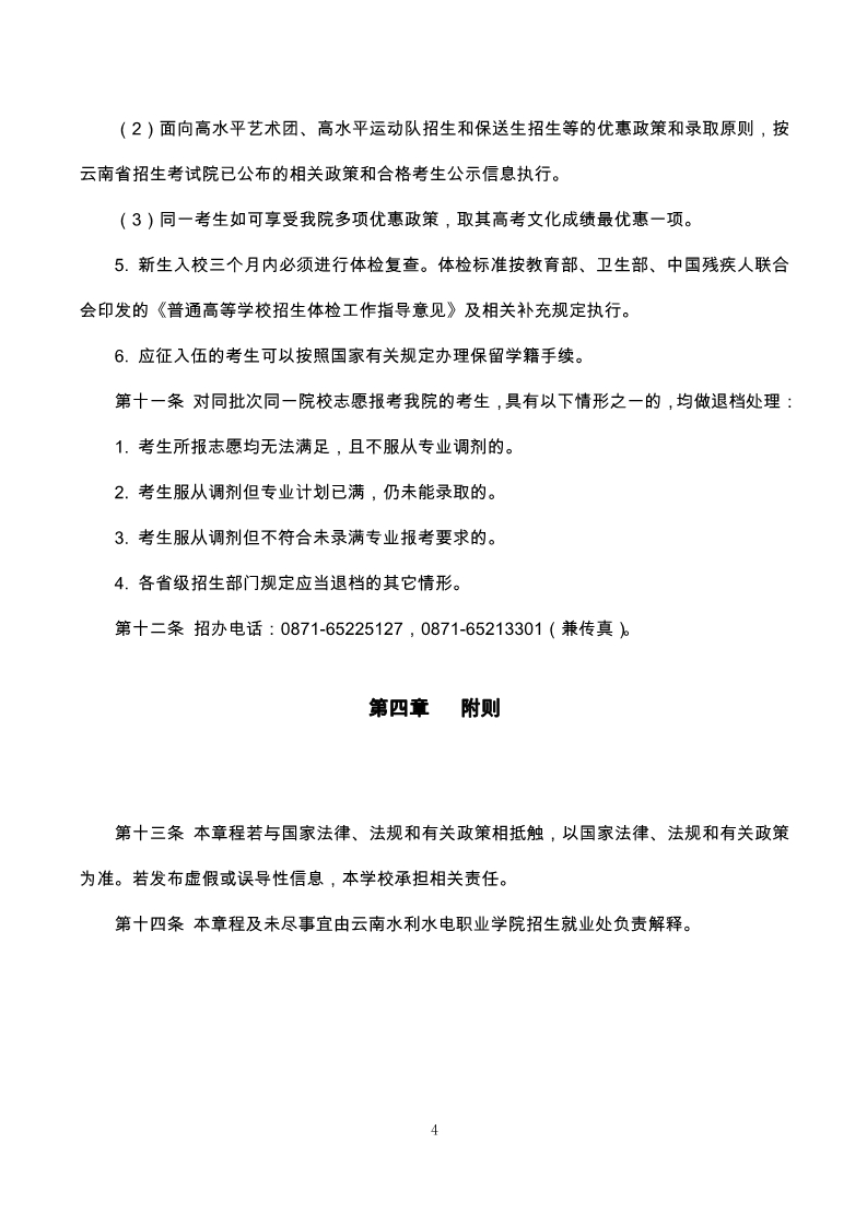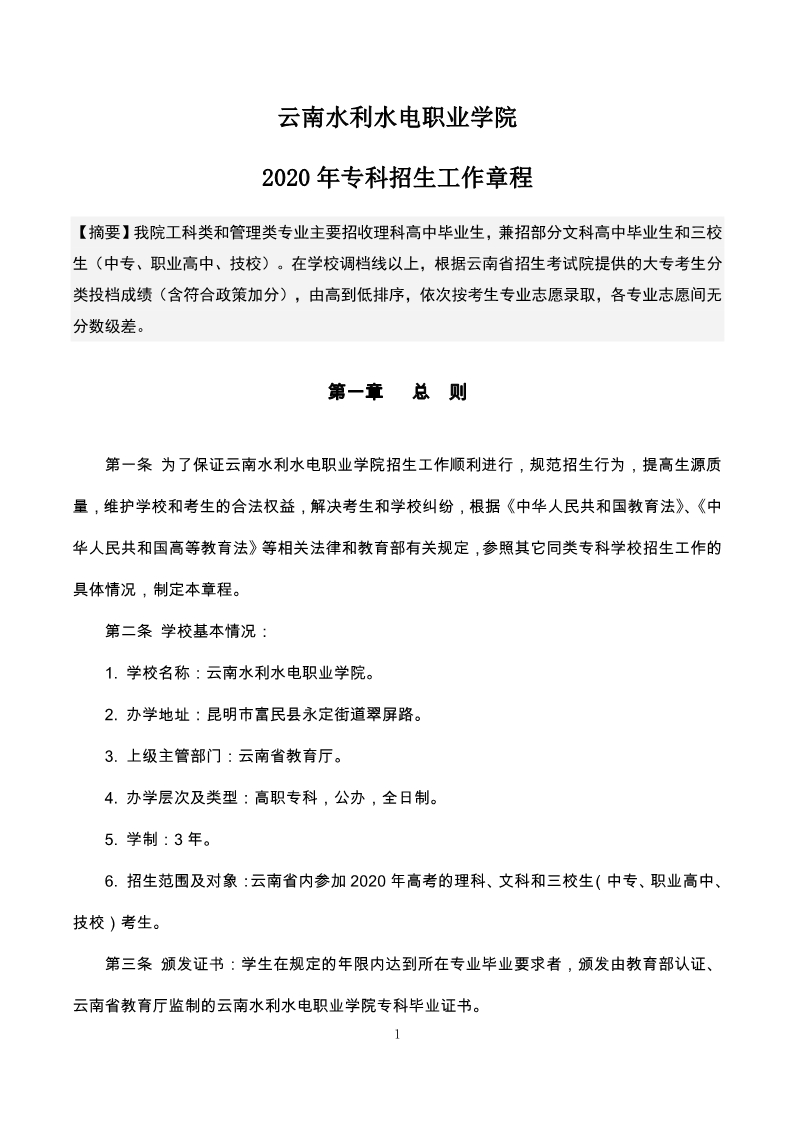 云南水利水電職業(yè)學(xué)院2020年招生工作章程