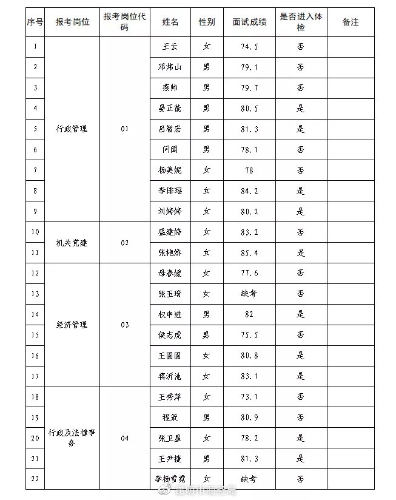 制工作人員面試成績(jī)及進(jìn)入體檢人員公告