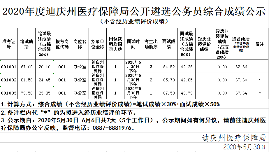 2020年度迪慶州醫(yī)療保障局公開遴選公務(wù)員綜合成績公示