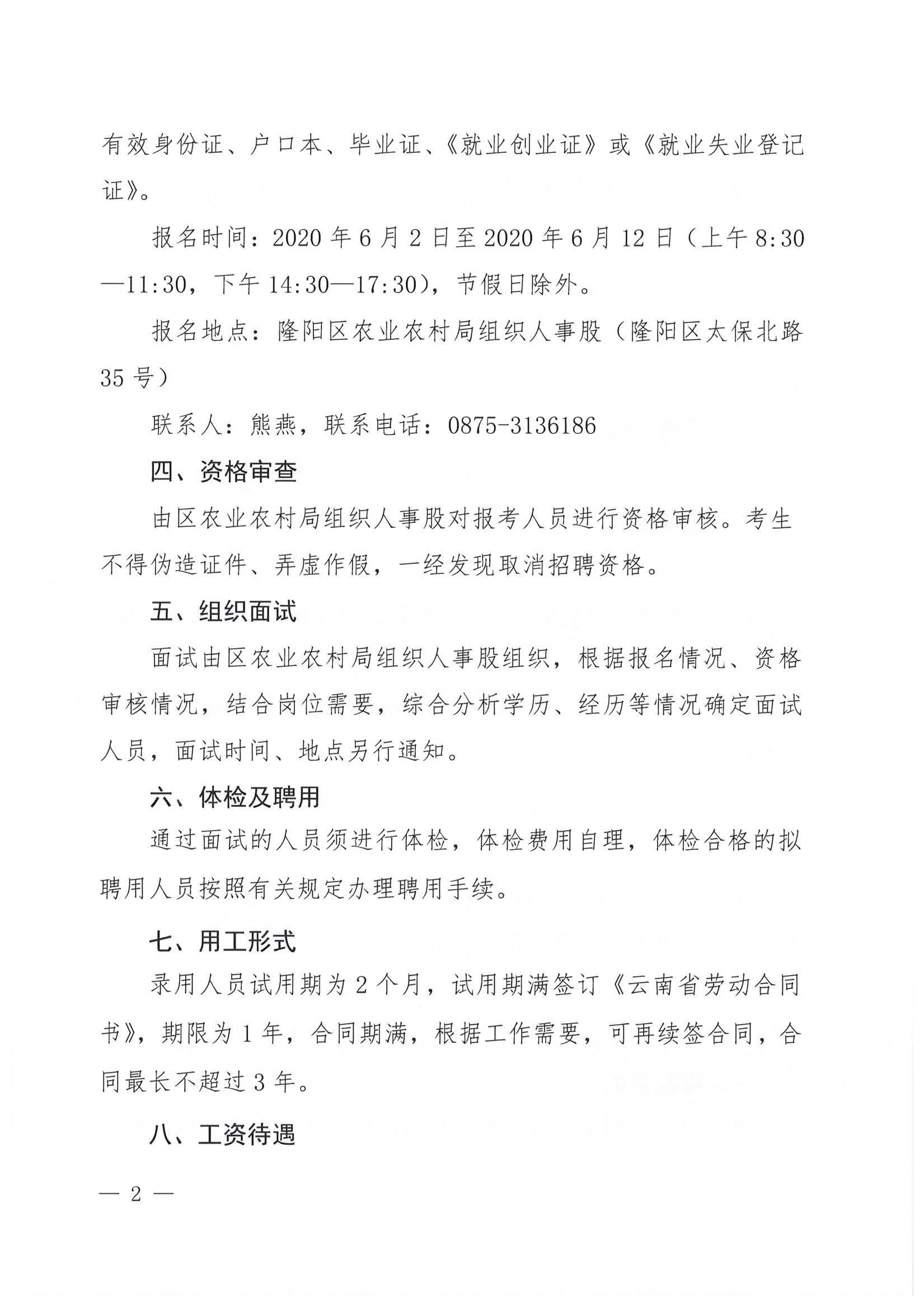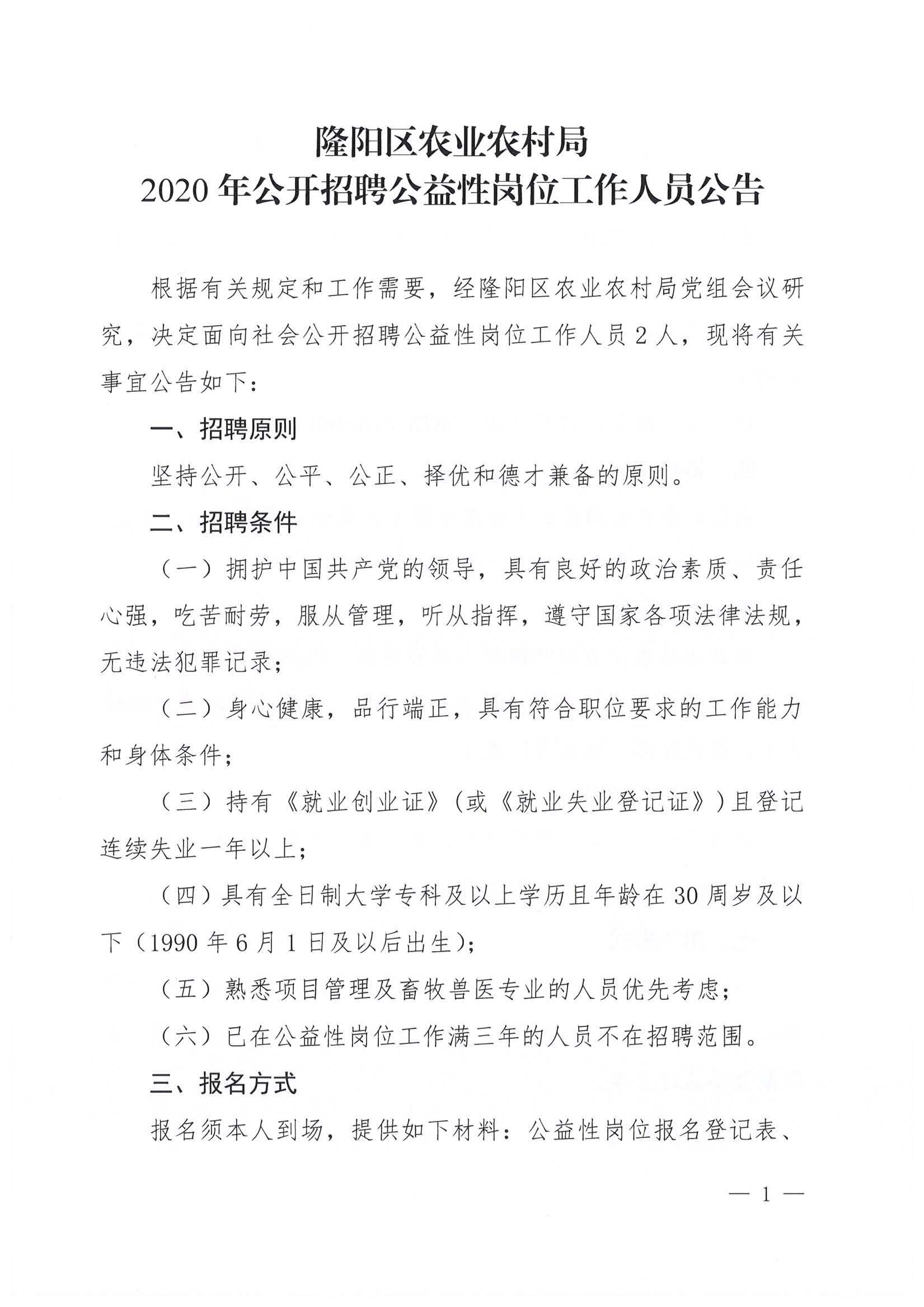 隆陽(yáng)區(qū)農(nóng)業(yè)農(nóng)村局2020年公開(kāi)招聘公益崗位工作人員公告