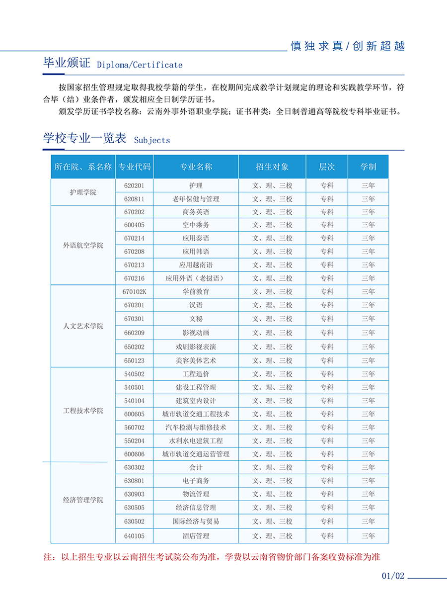 云南外事外語職業(yè)學(xué)院2020年招生簡章