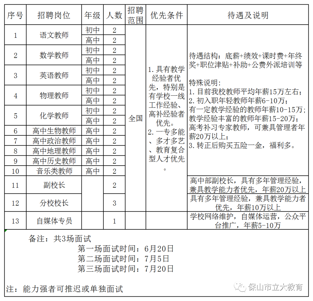 保山立大高補(bǔ)學(xué)校2020年公開招聘公告