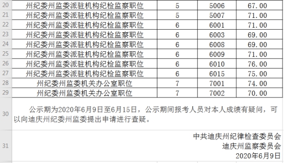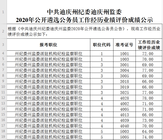 中共迪慶州紀(jì)委迪慶州監(jiān)委2020年公開遴選公務(wù)員工作經(jīng)歷業(yè)績(jī)?cè)u(píng)價(jià)成績(jī)公示