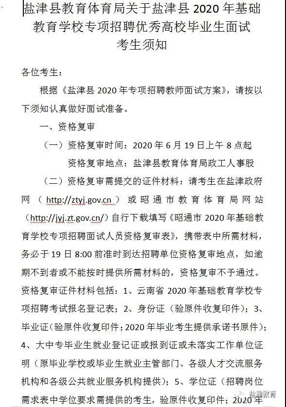 2020年昭通市鹽津縣教師專項(xiàng)招聘面試須知
