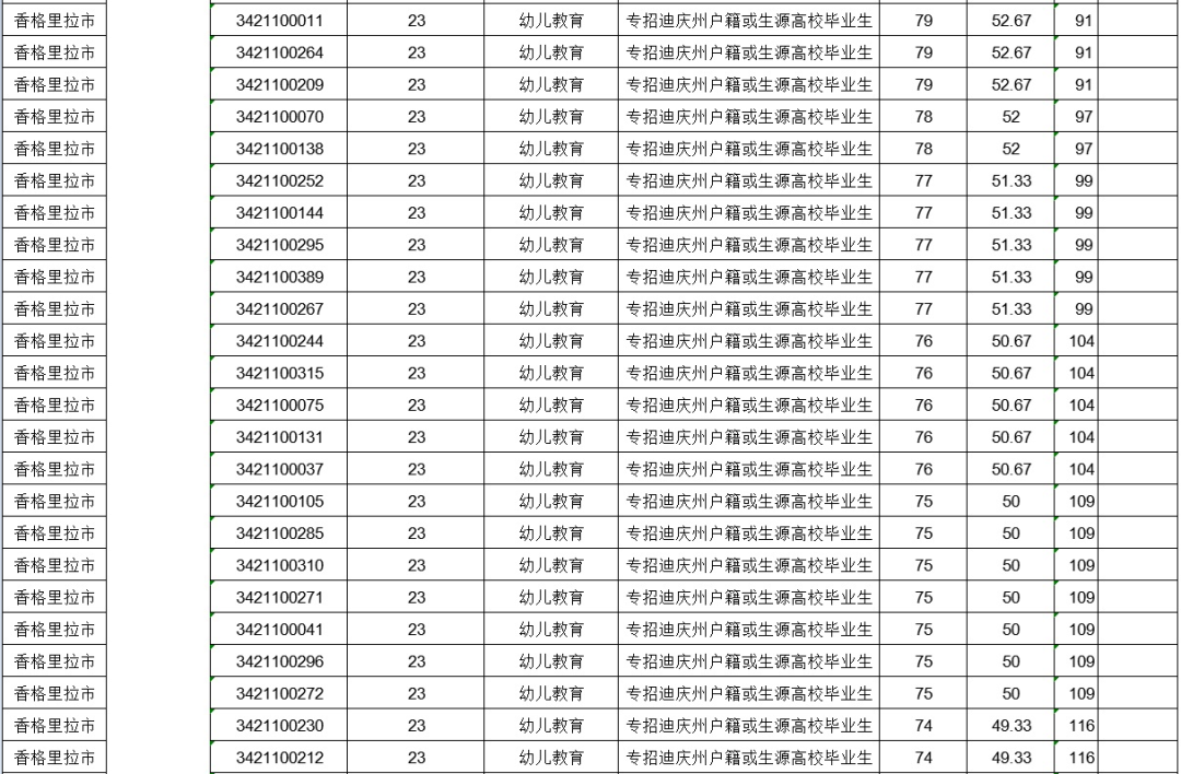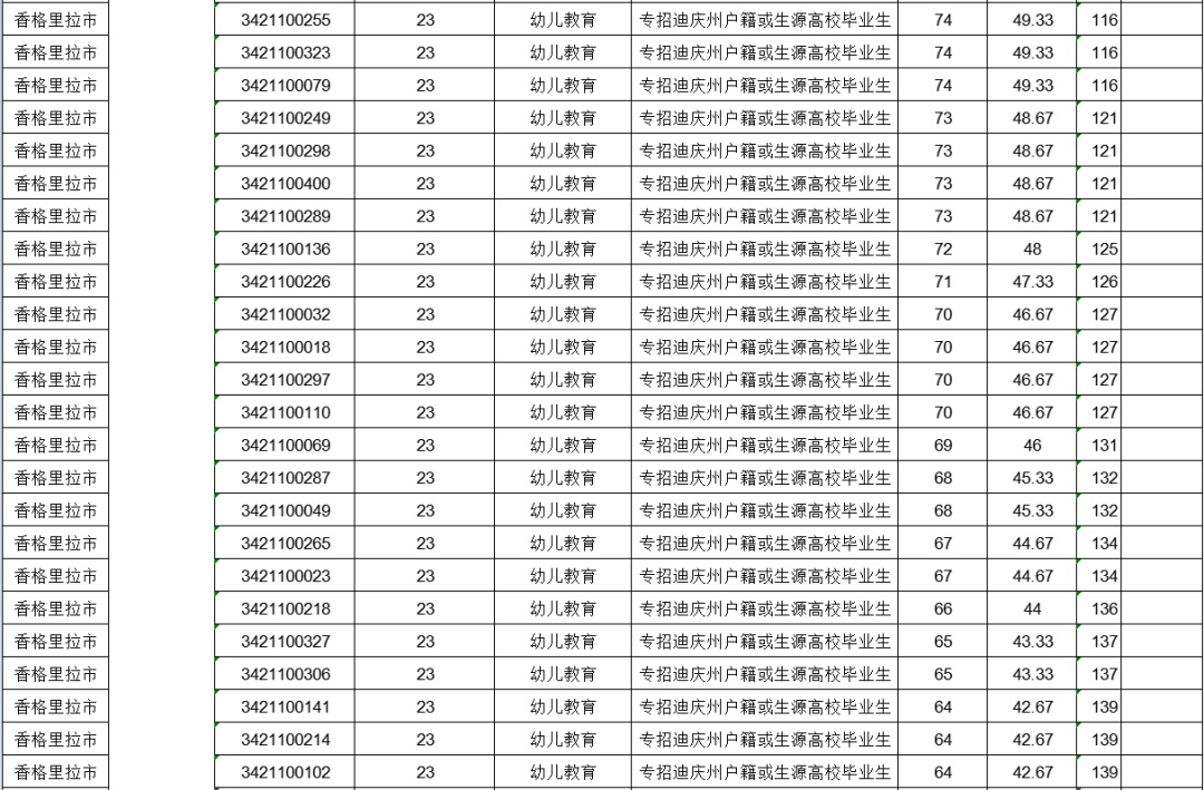 2020年香格里拉市專項招聘特殊教育、鄉(xiāng)鎮(zhèn)中心幼兒園教師進入資格復(fù)審人員公告