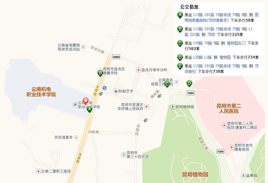 1、乘坐115路191路76路專線79路9路 到 昆明地質(zhì)勘探院(茨壩清真寺) 下車步行58米