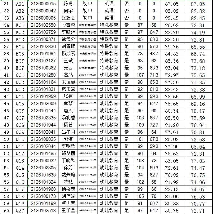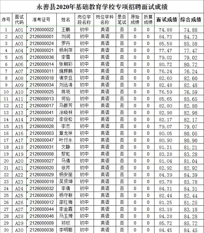 永善縣2020年基礎(chǔ)教育學(xué)校專項(xiàng)招聘面試成績(jī)