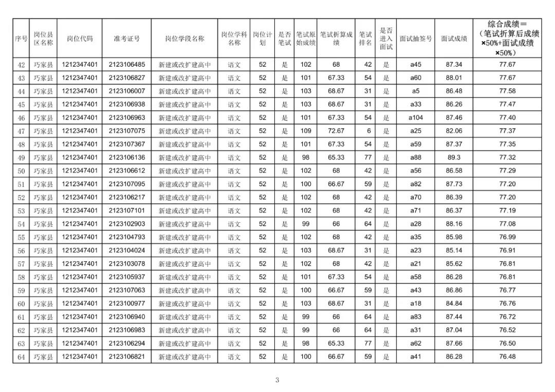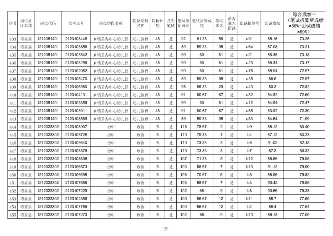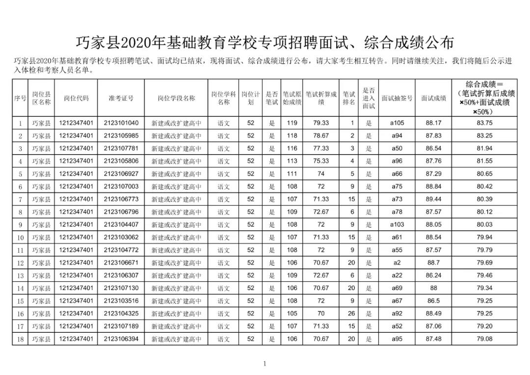 巧家縣2020年基礎(chǔ)教育學(xué)校專項(xiàng)招聘面試、綜合成績公布