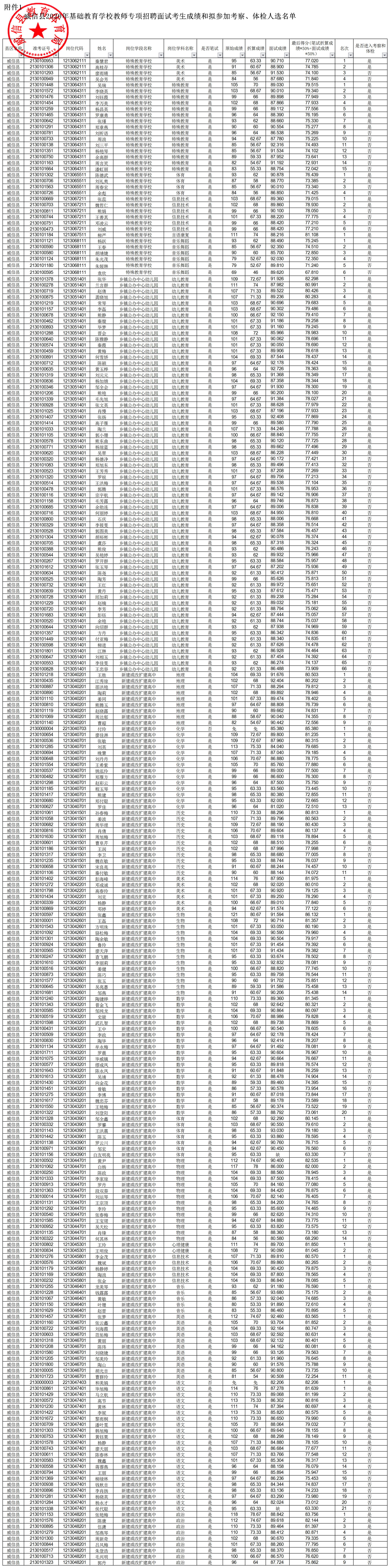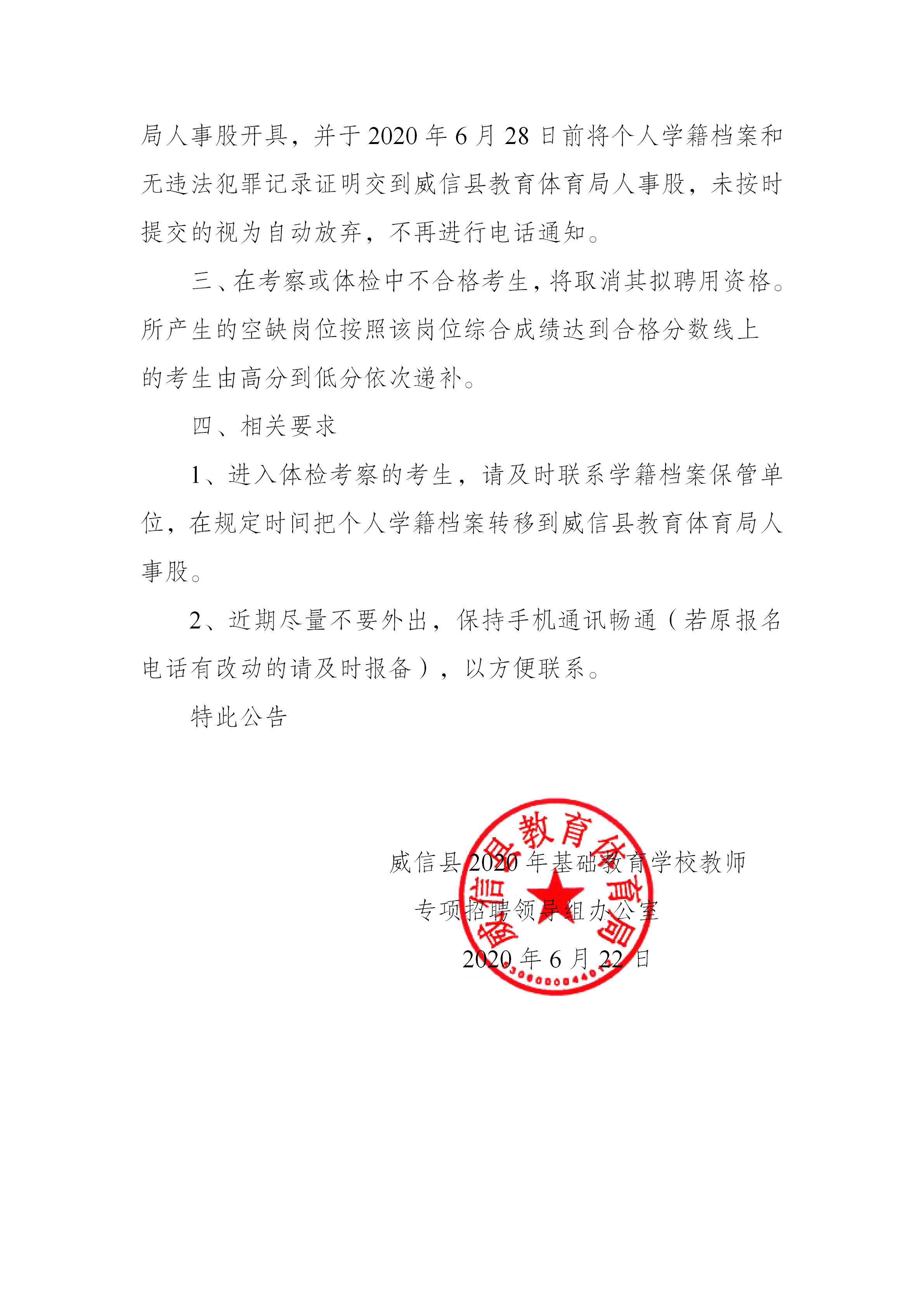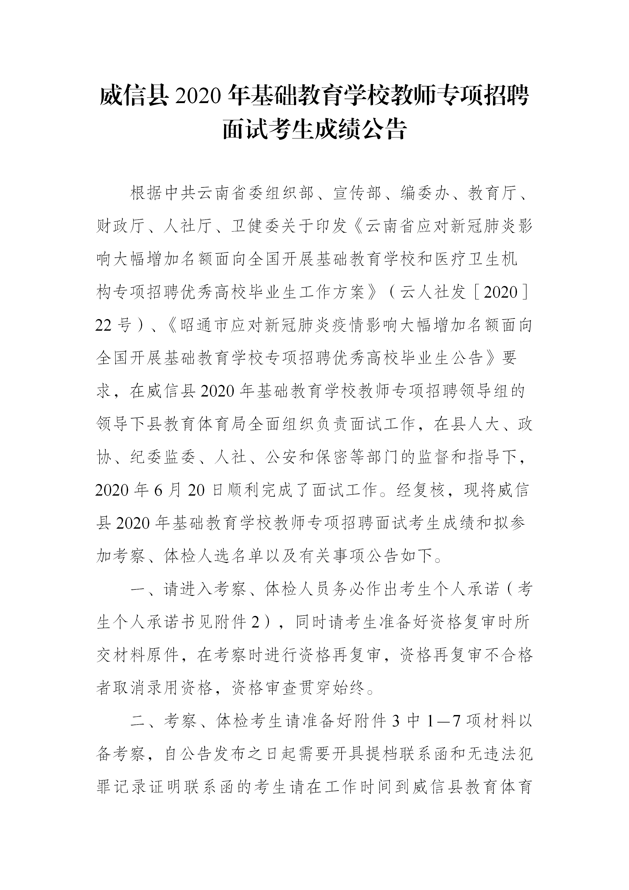威信縣2020年基礎(chǔ)教育學(xué)校教師專項招聘面試考生成績和擬參加考察、體檢人選名單(點擊下載)