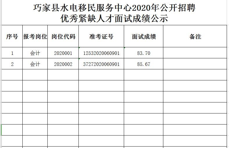 附件:巧家縣水電移民服務中心2020年公開招聘優(yōu)秀緊缺人才面試成績公示