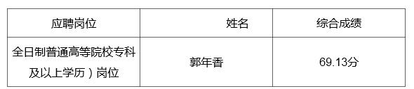 根據(jù)《楚雄州應(yīng)對(duì)新冠肺炎影響大幅增加名額面向全國(guó)開(kāi)展基礎(chǔ)教育學(xué)校專(zhuān)項(xiàng)招聘高校優(yōu)秀畢業(yè)生公告》,因報(bào)考雙柏縣“鄉(xiāng)鎮(zhèn)中心幼兒園(全日制普通高等院校專(zhuān)科及以上學(xué)歷)崗位”考生蘇曉婷資格條件不符,自動(dòng)放棄產(chǎn)生的崗位空缺,按考生總成績(jī)從高分到低分依次遞補(bǔ)一次,現(xiàn)將遞補(bǔ)人員名單公示如下: