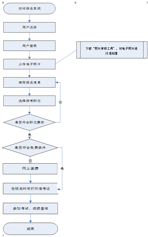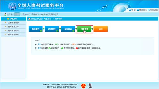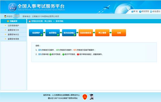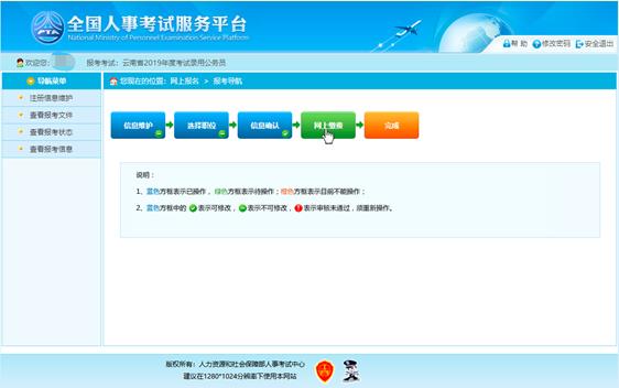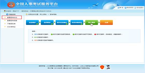 選擇相應(yīng)的職位,點擊“保存”按鈕,提示保存成功。保存成功后會根據(jù)所報考的職位及計算機審核情況跳轉(zhuǎn)到如下報考流程頁面,如圖所示: