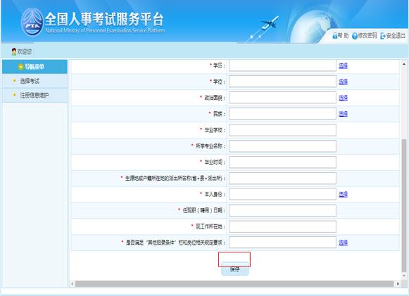 通過點擊系統(tǒng)導航菜單中“注冊信息維護”選項,可跳轉(zhuǎn)到修改注冊信息頁面,其中登入用戶名、考生姓名和證件號碼等考生關(guān)鍵信息不允許進行修改,如下圖所示: