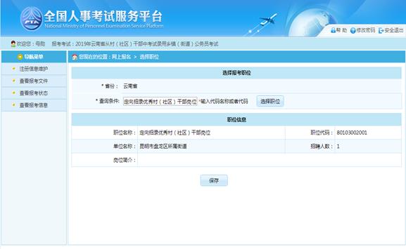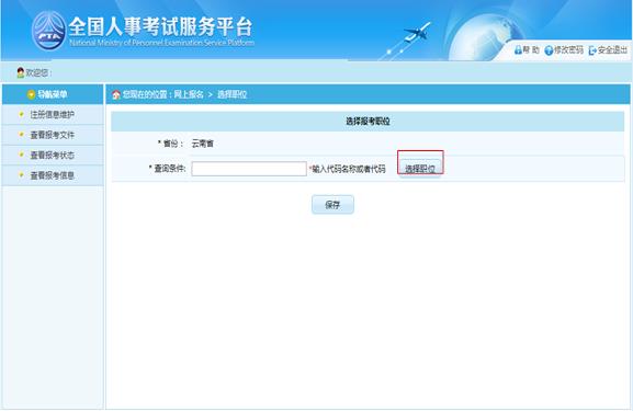 點擊“選擇職位”選項,可以跳轉(zhuǎn)到選擇報考職位界面,如下圖所示:
