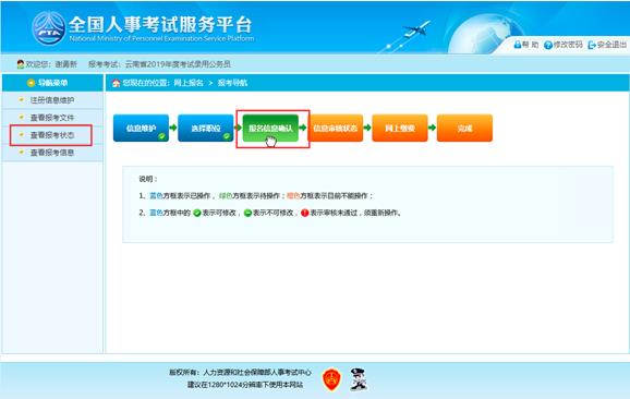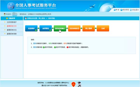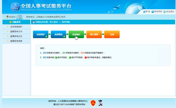 通過點擊“確認”按鈕,提示確認成功后跳轉(zhuǎn)到報考流程頁面,則完成填報信息操作。如下圖所示: