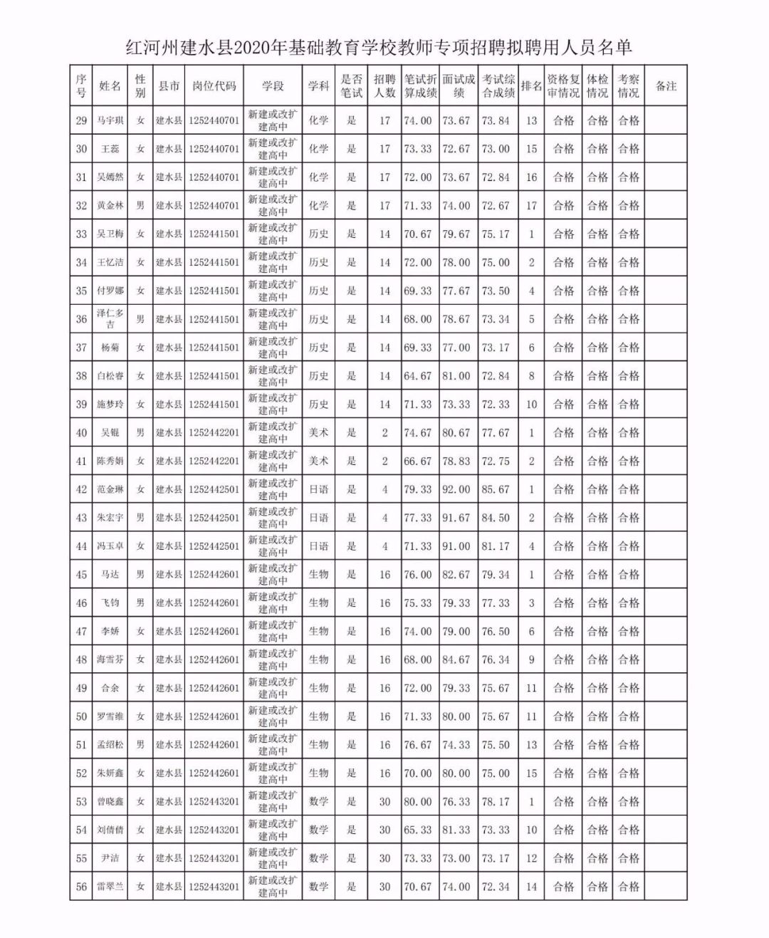 附件:建水縣2020年專項招聘基礎教育學校教師擬聘用人員(第一批)