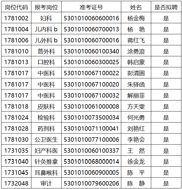 云南省婦幼保健院2020年專項招聘優(yōu)秀高校畢業(yè)生擬聘人員名單公示