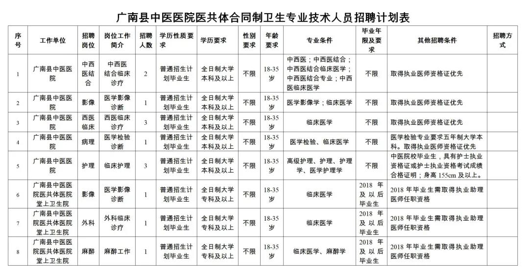 廣南縣中醫(yī)醫(yī)院醫(yī)共體合同制衛(wèi)生專業(yè)技術(shù)人員招聘公告