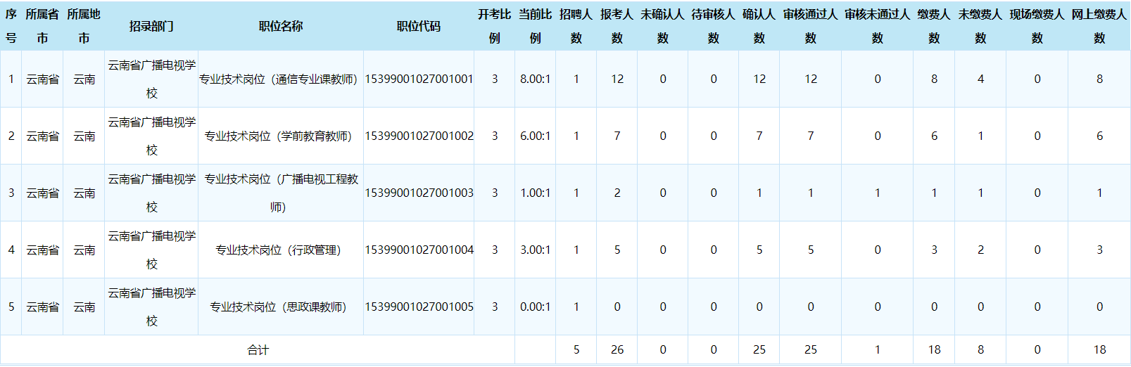 云南省廣播電視學(xué)校2020年事業(yè)單位招聘報(bào)名情況(截止7月1日)