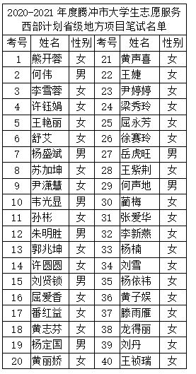 騰沖市2020—2021年大學(xué)生志愿服務(wù)西部計劃省級地方項目筆試公告