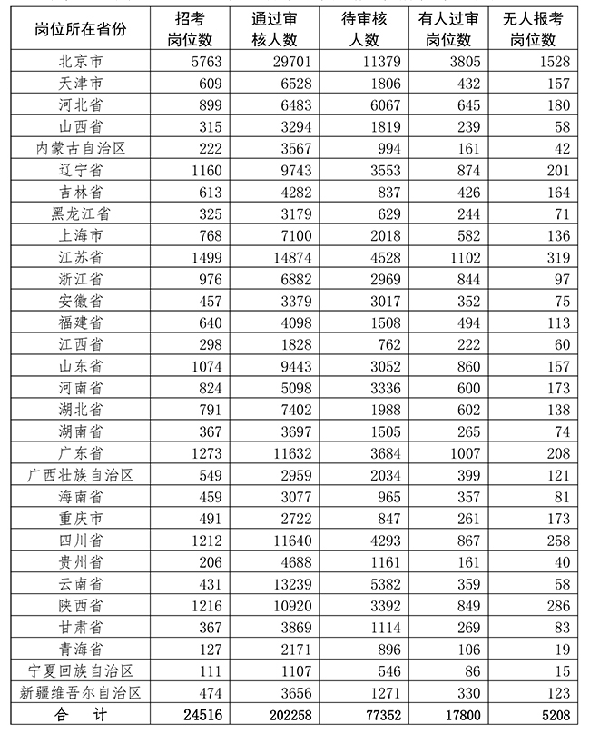 1.截至7月7日17時各省份崗位報考情況統(tǒng)計表