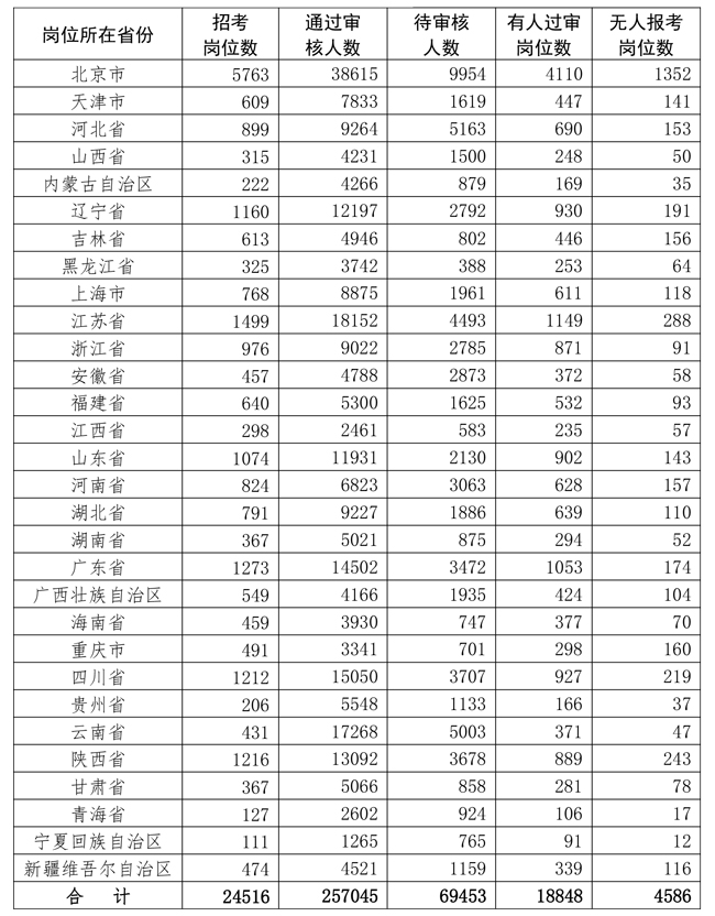 1.截至7月8日17時各省份崗位報考情況統(tǒng)計表