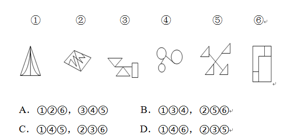 例題:把下面的六個圖形分為兩類,使每一類圖形都有各自的共同特征或規(guī)律,分類正確的一項是: