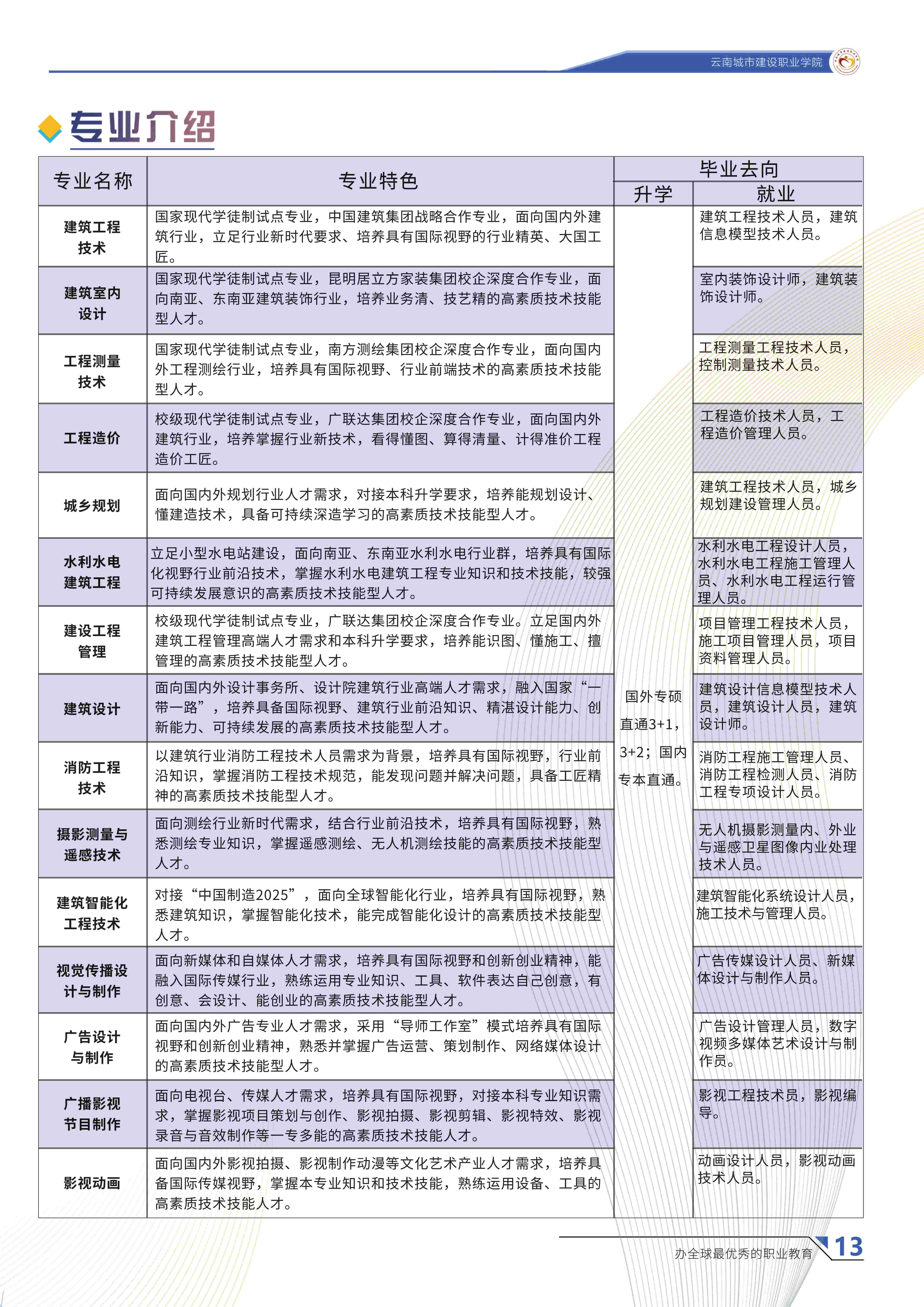 云南城市建設職業(yè)學院2020年三年制大專招生簡章