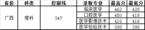 昆明醫(yī)科大學海源學院2019年廣西省錄取分數線